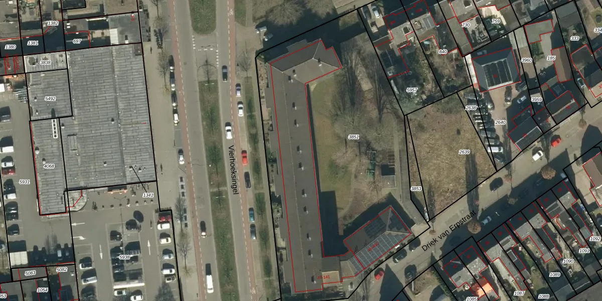 Het perceel waarop Driek van Erpstraat 81 staat heeft een oppervlakte van 3833 m². Dit is een zeer groot perceel. De perceeloppervlakte wordt geregistreerd door het Kadaster. Gedetailleerde informatie over de maten van dit perceel kunt u vinden in het rapport Kadastrale kaart met maatvoering van Driek van Erpstraat 81.