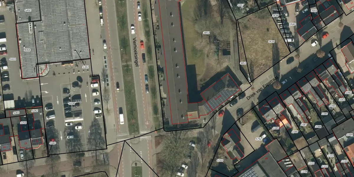 Het perceel waarop Driek van Erpstraat 97 staat heeft een oppervlakte van 3833 m². Dit is een zeer groot perceel. De perceeloppervlakte wordt geregistreerd door het Kadaster. Gedetailleerde informatie over de maten van dit perceel kunt u vinden in het rapport Kadastrale kaart met maatvoering van Driek van Erpstraat 97.
