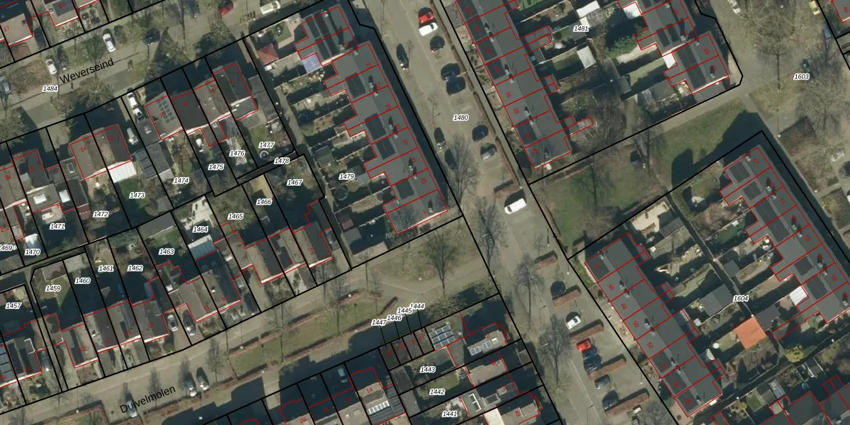 Het perceel waarop Duivelmolen 1 staat heeft een oppervlakte van 1696 m². Dit is een zeer groot perceel. De perceeloppervlakte wordt geregistreerd door het Kadaster. Gedetailleerde informatie over de maten van dit perceel kunt u vinden in het rapport Kadastrale kaart met maatvoering van Duivelmolen 1.