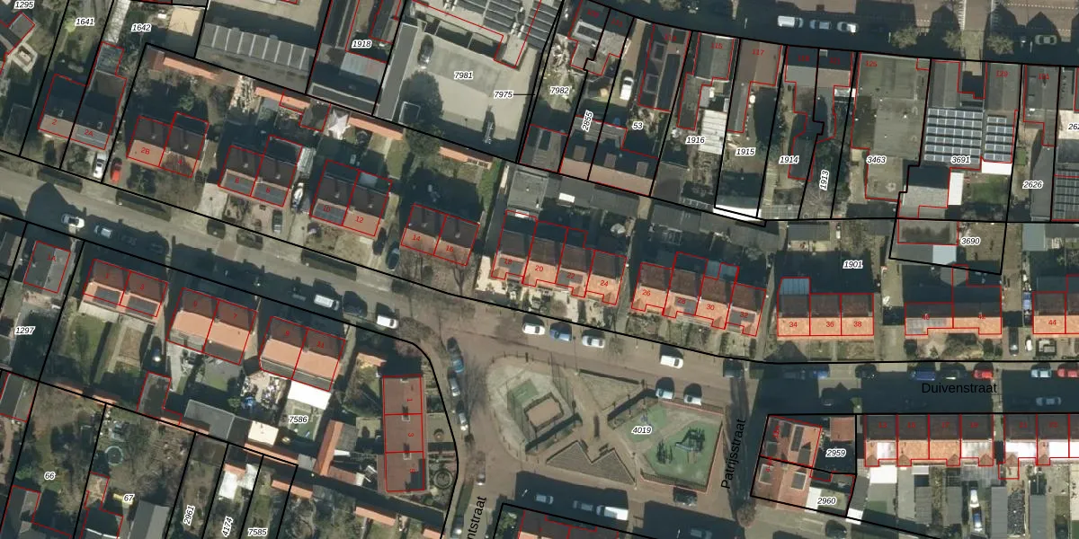 Het perceel waarop Duivenstraat 20 staat heeft een oppervlakte van 6510 m². Dit is een zeer groot perceel. De perceeloppervlakte wordt geregistreerd door het Kadaster. Gedetailleerde informatie over de maten van dit perceel kunt u vinden in het rapport Kadastrale kaart met maatvoering van Duivenstraat 20.