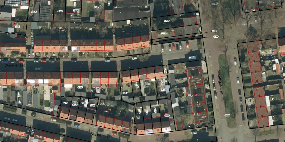 Het perceel waarop Duivenstraat 45 staat heeft een oppervlakte van 264 m². Dit is een middelgroot perceel. De perceeloppervlakte wordt geregistreerd door het Kadaster. Gedetailleerde informatie over de maten van dit perceel kunt u vinden in het rapport Kadastrale kaart met maatvoering van Duivenstraat 45.