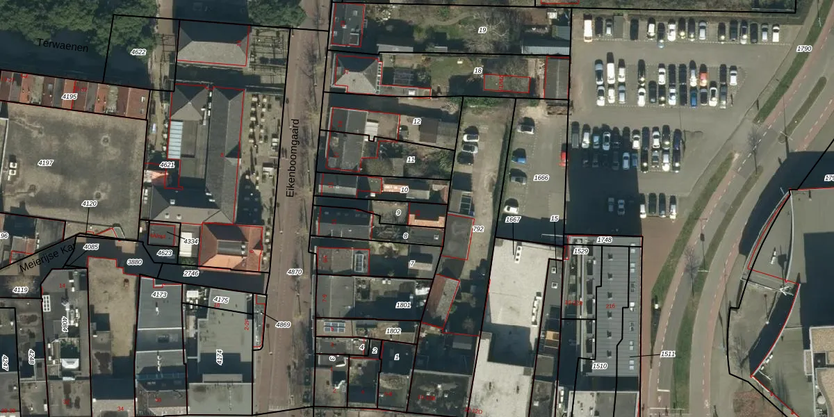 Eikenboomgaard 13 is gelegen op kadastraal perceel OSS00G9. Deze kadastrale aanduiding is uniek en wordt gebruikt door het Kadaster om eigendomsrechten en andere zakelijke rechten vast te leggen. Het perceel maakt onderdeel uit van de kadastrale gemeente Oss.