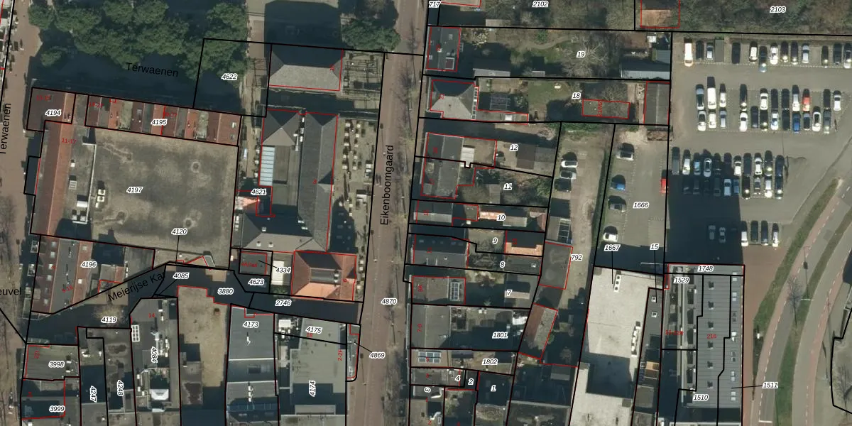 Het perceel waarop Eikenboomgaard 15 staat heeft een oppervlakte van 188 m². Dit is een middelgroot perceel. De perceeloppervlakte wordt geregistreerd door het Kadaster. Gedetailleerde informatie over de maten van dit perceel kunt u vinden in het rapport Kadastrale kaart met maatvoering van Eikenboomgaard 15.