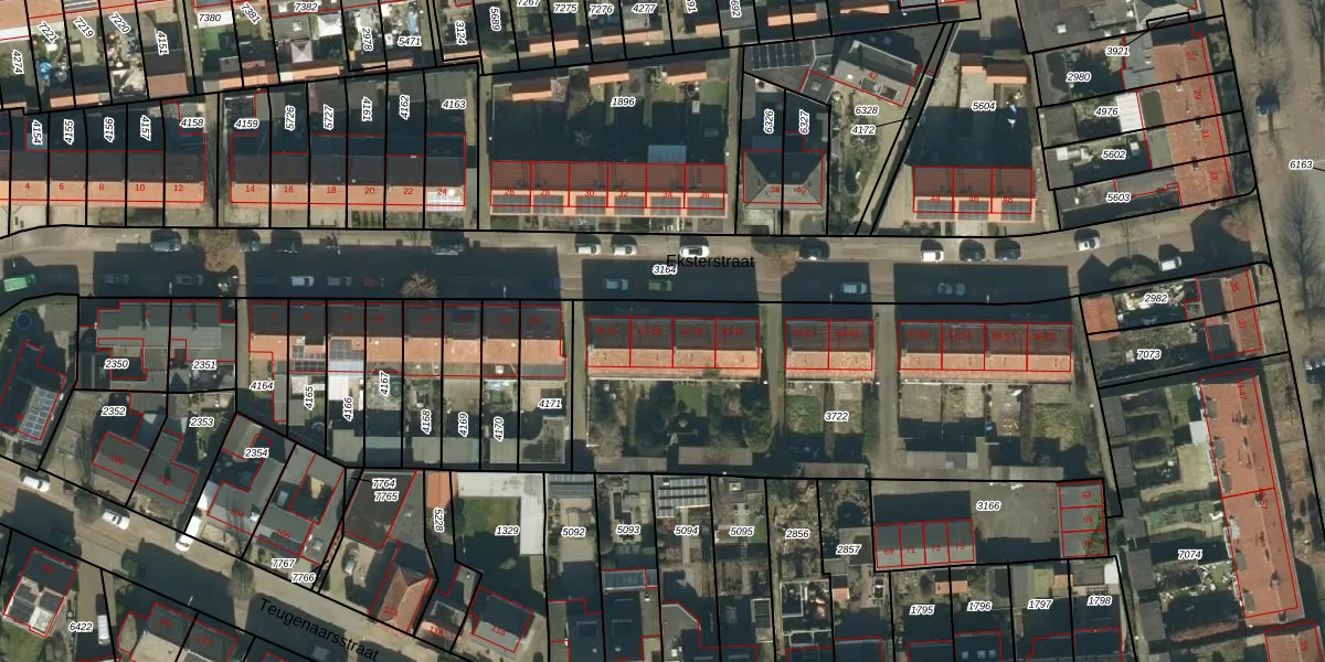Eksterstraat 29 is gelegen op kadastraal perceel OSS00E3722. Deze kadastrale aanduiding is uniek en wordt gebruikt door het Kadaster om eigendomsrechten en andere zakelijke rechten vast te leggen. Het perceel maakt onderdeel uit van de kadastrale gemeente Oss.