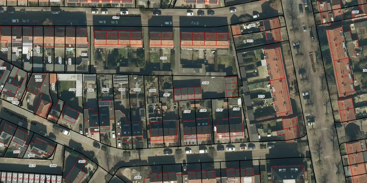 Eksterstraat 71 is gelegen op kadastraal perceel OSS00E3166. Deze kadastrale aanduiding is uniek en wordt gebruikt door het Kadaster om eigendomsrechten en andere zakelijke rechten vast te leggen. Het perceel maakt onderdeel uit van de kadastrale gemeente Oss.