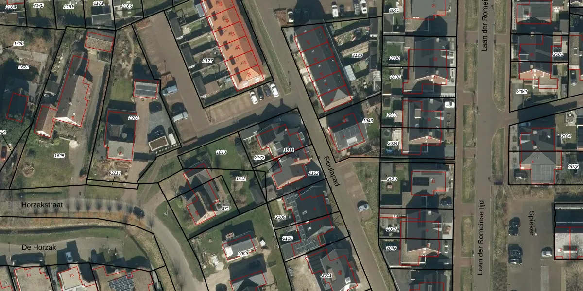 Het perceel waarop Fibulapad 13 staat heeft een oppervlakte van 298 m². Dit is een middelgroot perceel. De perceeloppervlakte wordt geregistreerd door het Kadaster. Gedetailleerde informatie over de maten van dit perceel kunt u vinden in het rapport Kadastrale kaart met maatvoering van Fibulapad 13.