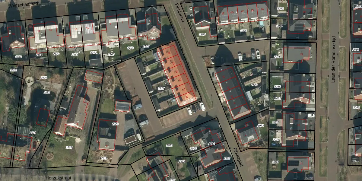 Het perceel waarop Fibulapad 17 staat heeft een oppervlakte van 939 m². Dit is een groot perceel. De perceeloppervlakte wordt geregistreerd door het Kadaster. Gedetailleerde informatie over de maten van dit perceel kunt u vinden in het rapport Kadastrale kaart met maatvoering van Fibulapad 17.