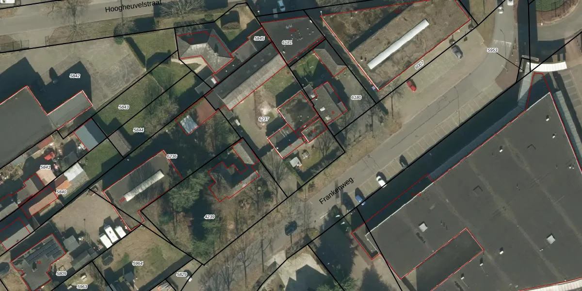 Frankenweg 6 is gelegen op kadastraal perceel OSS00B6237. Deze kadastrale aanduiding is uniek en wordt gebruikt door het Kadaster om eigendomsrechten en andere zakelijke rechten vast te leggen. Het perceel maakt onderdeel uit van de kadastrale gemeente Oss.