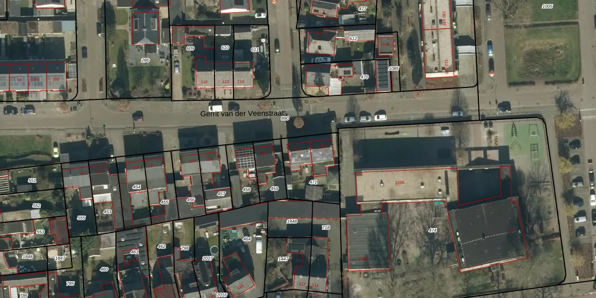 Het perceel waarop Gerrit van der Veenstraat 227 staat heeft een oppervlakte van 410 m². Dit is een groot perceel. De perceeloppervlakte wordt geregistreerd door het Kadaster. Gedetailleerde informatie over de maten van dit perceel kunt u vinden in het rapport Kadastrale kaart met maatvoering van Gerrit van der Veenstraat 227.