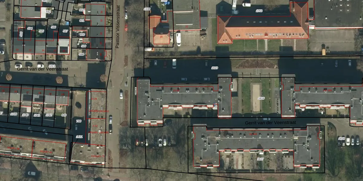 Het perceel waarop Gerrit van der Veenstraat 85 staat heeft een oppervlakte van 2955 m². Dit is een zeer groot perceel. De perceeloppervlakte wordt geregistreerd door het Kadaster. Gedetailleerde informatie over de maten van dit perceel kunt u vinden in het rapport Kadastrale kaart met maatvoering van Gerrit van der Veenstraat 85.