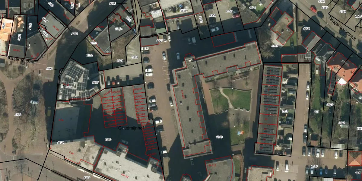 Het perceel waarop Goudmijnhof 130 staat heeft een oppervlakte van 7675 m². Dit is een zeer groot perceel. De perceeloppervlakte wordt geregistreerd door het Kadaster. Gedetailleerde informatie over de maten van dit perceel kunt u vinden in het rapport Kadastrale kaart met maatvoering van Goudmijnhof 130.