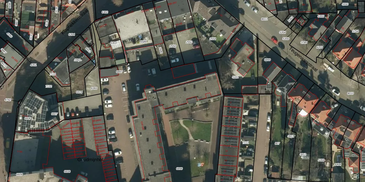 Het perceel waarop Goudmijnhof 144 staat heeft een oppervlakte van 7675 m². Dit is een zeer groot perceel. De perceeloppervlakte wordt geregistreerd door het Kadaster. Gedetailleerde informatie over de maten van dit perceel kunt u vinden in het rapport Kadastrale kaart met maatvoering van Goudmijnhof 144.