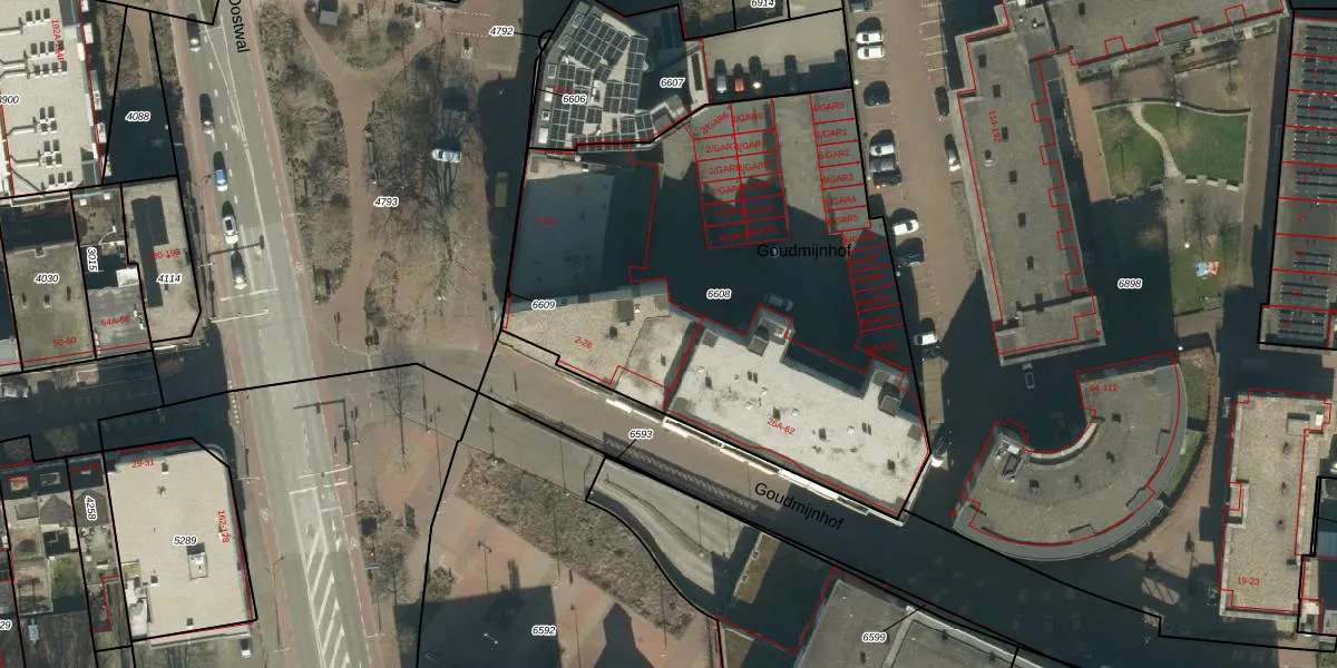 Goudmijnhof 18 is gelegen op kadastraal perceel OSS00E6608. Deze kadastrale aanduiding is uniek en wordt gebruikt door het Kadaster om eigendomsrechten en andere zakelijke rechten vast te leggen. Het perceel maakt onderdeel uit van de kadastrale gemeente Oss.