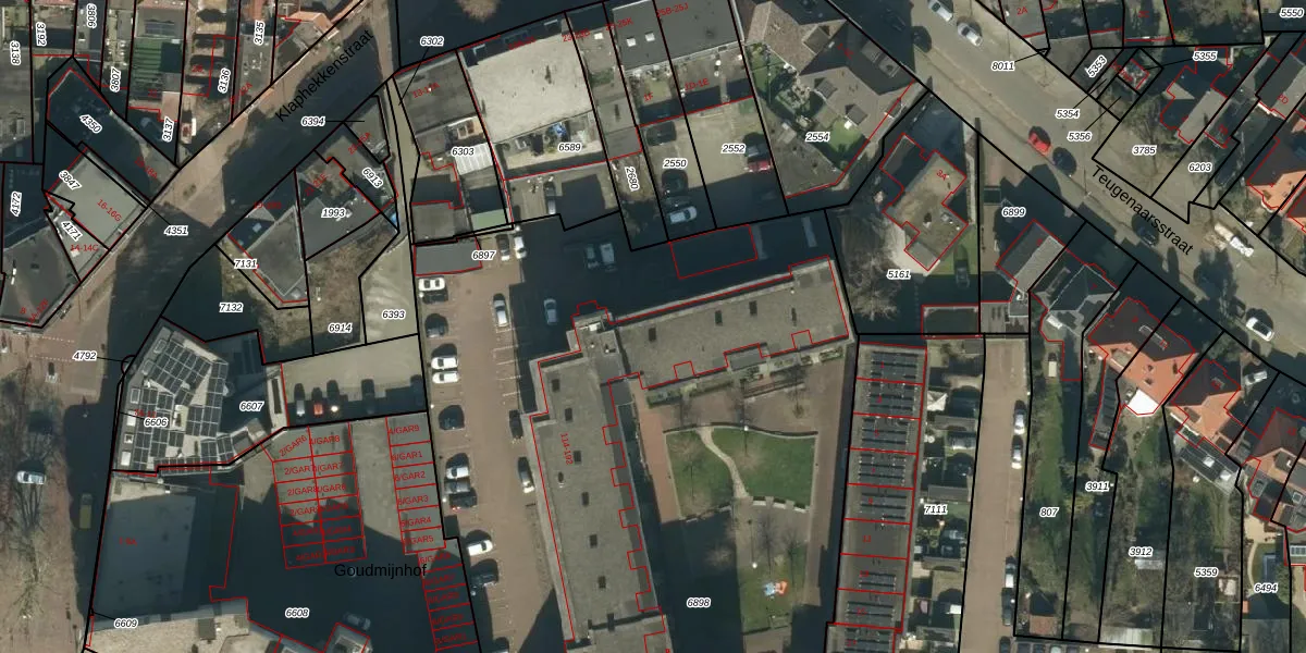 Het perceel waarop Goudmijnhof 186 staat heeft een oppervlakte van 7675 m². Dit is een zeer groot perceel. De perceeloppervlakte wordt geregistreerd door het Kadaster. Gedetailleerde informatie over de maten van dit perceel kunt u vinden in het rapport Kadastrale kaart met maatvoering van Goudmijnhof 186.