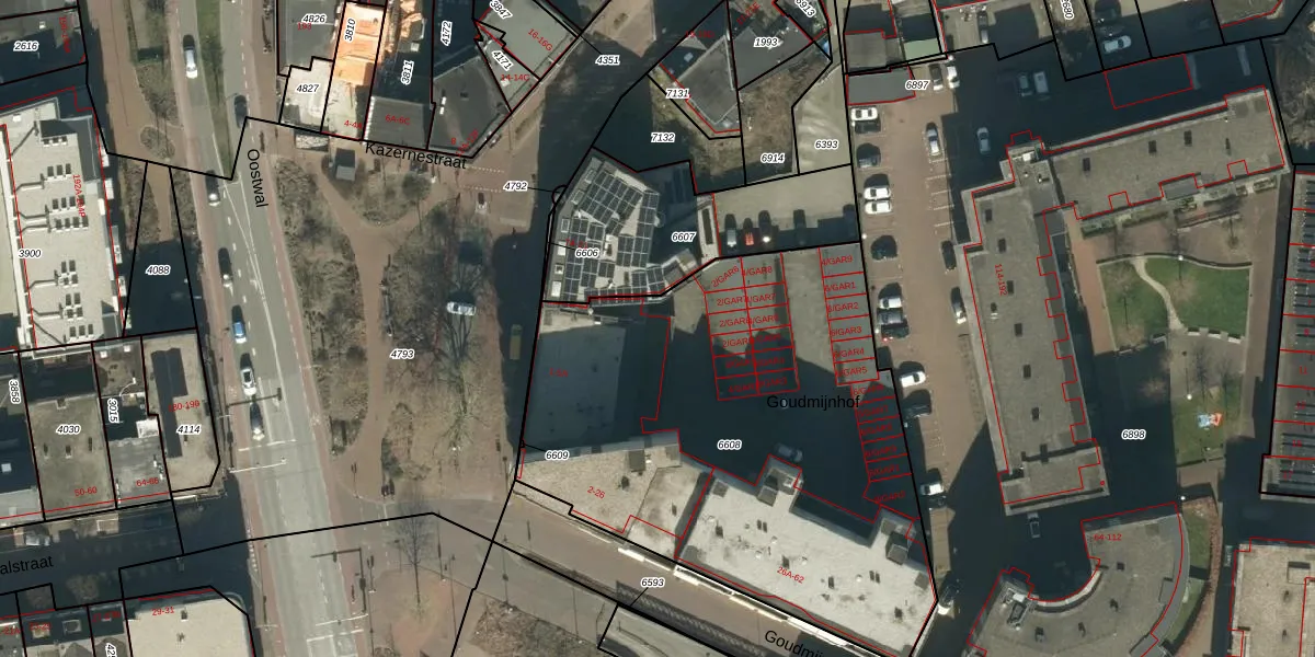 Goudmijnhof 2-GAR5 is gelegen op kadastraal perceel OSS00E6608. Deze kadastrale aanduiding is uniek en wordt gebruikt door het Kadaster om eigendomsrechten en andere zakelijke rechten vast te leggen. Het perceel maakt onderdeel uit van de kadastrale gemeente Oss.
