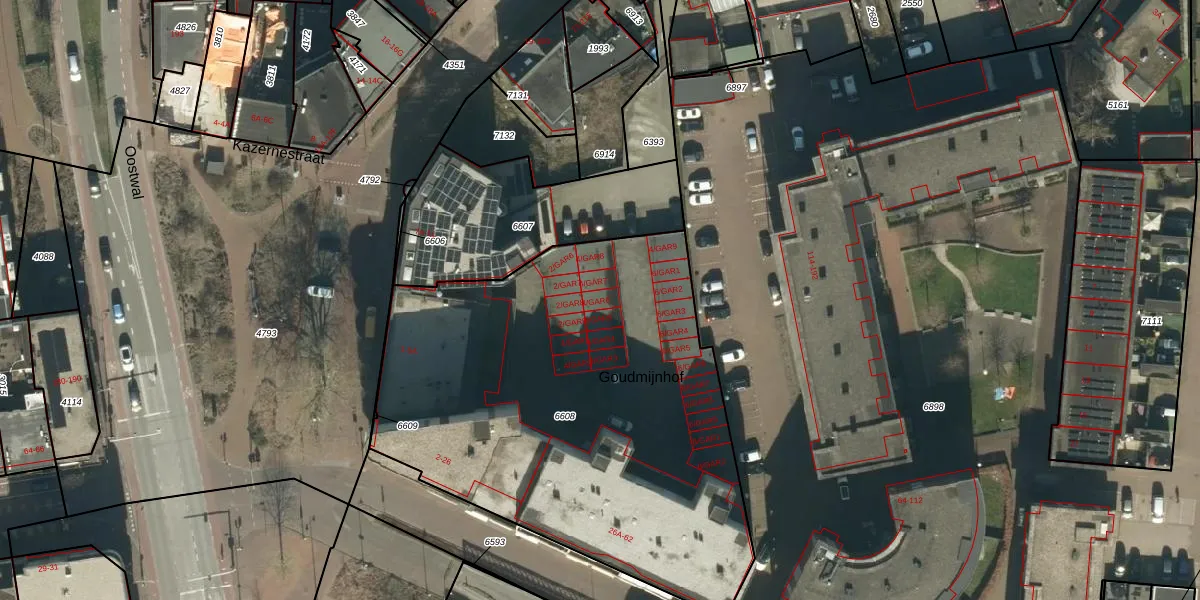 Goudmijnhof 4-GAR6 is gelegen op kadastraal perceel OSS00E6608. Deze kadastrale aanduiding is uniek en wordt gebruikt door het Kadaster om eigendomsrechten en andere zakelijke rechten vast te leggen. Het perceel maakt onderdeel uit van de kadastrale gemeente Oss.