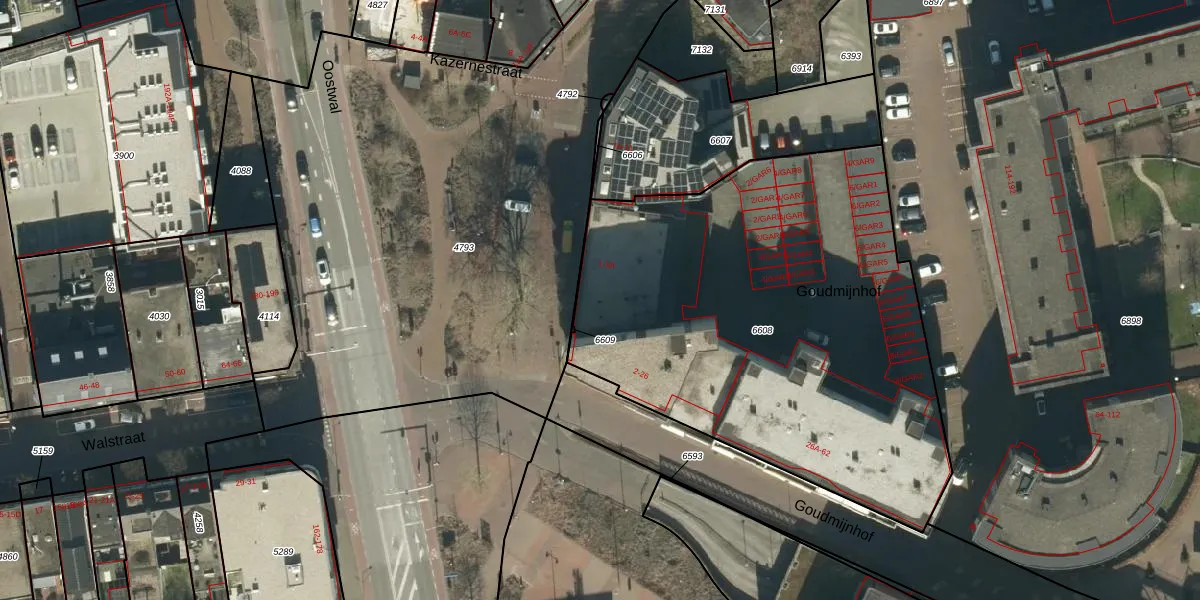 Goudmijnhof 6 is gelegen op kadastraal perceel OSS00E6608. Deze kadastrale aanduiding is uniek en wordt gebruikt door het Kadaster om eigendomsrechten en andere zakelijke rechten vast te leggen. Het perceel maakt onderdeel uit van de kadastrale gemeente Oss.
