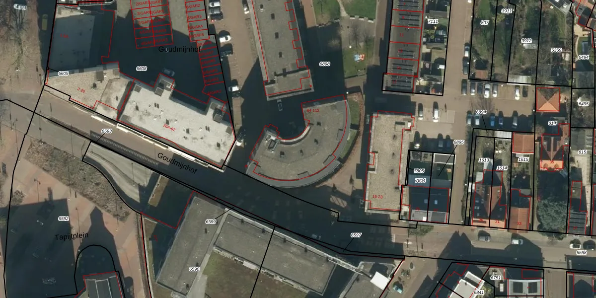 Het perceel waarop Goudmijnhof 76 staat heeft een oppervlakte van 7675 m². Dit is een zeer groot perceel. De perceeloppervlakte wordt geregistreerd door het Kadaster. Gedetailleerde informatie over de maten van dit perceel kunt u vinden in het rapport Kadastrale kaart met maatvoering van Goudmijnhof 76.