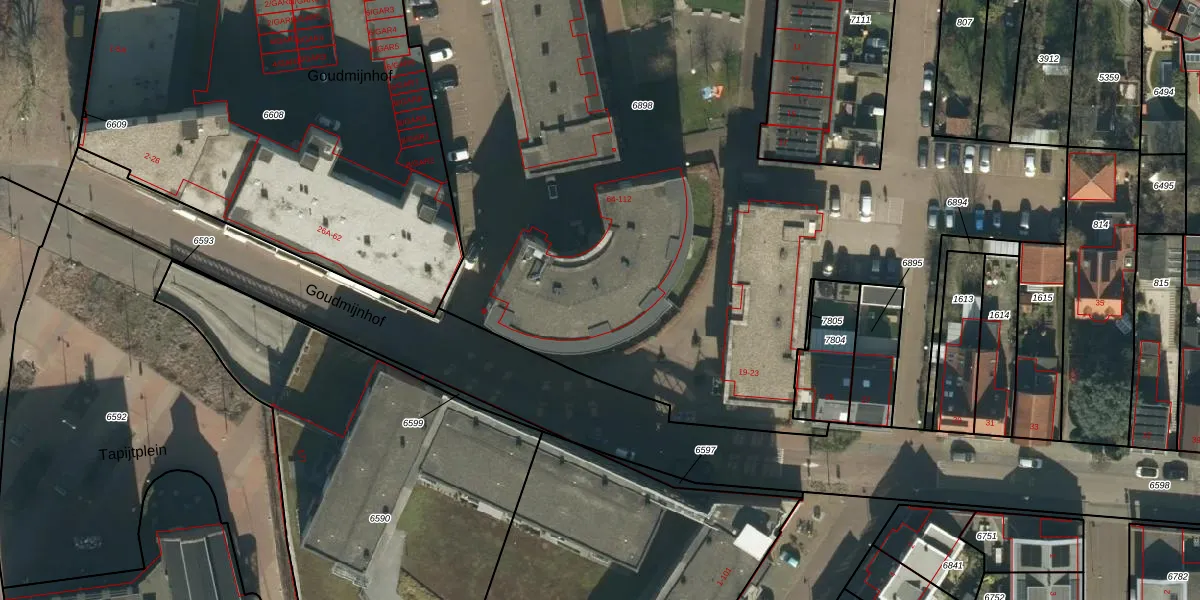 Het perceel waarop Goudmijnhof 96 staat heeft een oppervlakte van 7675 m². Dit is een zeer groot perceel. De perceeloppervlakte wordt geregistreerd door het Kadaster. Gedetailleerde informatie over de maten van dit perceel kunt u vinden in het rapport Kadastrale kaart met maatvoering van Goudmijnhof 96.