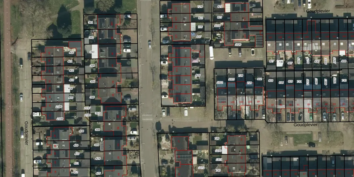 Het perceel waarop Goudplevier 111 staat heeft een oppervlakte van 874 m². Dit is een groot perceel. De perceeloppervlakte wordt geregistreerd door het Kadaster. Gedetailleerde informatie over de maten van dit perceel kunt u vinden in het rapport Kadastrale kaart met maatvoering van Goudplevier 111.