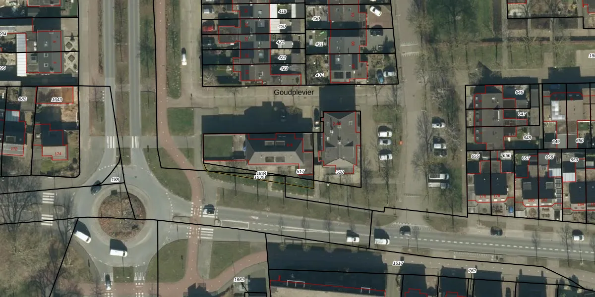Goudplevier 6 is gelegen op kadastraal perceel OSS00H517. Deze kadastrale aanduiding is uniek en wordt gebruikt door het Kadaster om eigendomsrechten en andere zakelijke rechten vast te leggen. Het perceel maakt onderdeel uit van de kadastrale gemeente Oss.