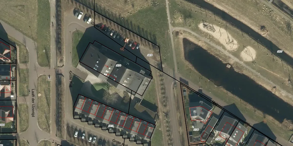 Het perceel waarop Grote Kuil 12 staat heeft een oppervlakte van 850 m². Dit is een groot perceel. De perceeloppervlakte wordt geregistreerd door het Kadaster. Gedetailleerde informatie over de maten van dit perceel kunt u vinden in het rapport Kadastrale kaart met maatvoering van Grote Kuil 12.