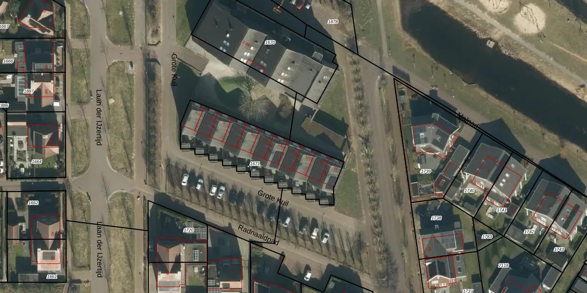 Het perceel waarop Grote Kuil 15 staat heeft een oppervlakte van 890 m². Dit is een groot perceel. De perceeloppervlakte wordt geregistreerd door het Kadaster. Gedetailleerde informatie over de maten van dit perceel kunt u vinden in het rapport Kadastrale kaart met maatvoering van Grote Kuil 15.