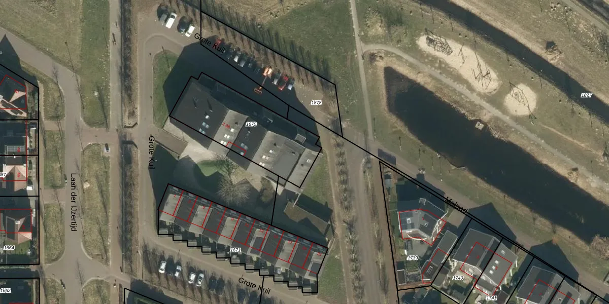Het perceel waarop Grote Kuil 26 staat heeft een oppervlakte van 850 m². Dit is een groot perceel. De perceeloppervlakte wordt geregistreerd door het Kadaster. Gedetailleerde informatie over de maten van dit perceel kunt u vinden in het rapport Kadastrale kaart met maatvoering van Grote Kuil 26.