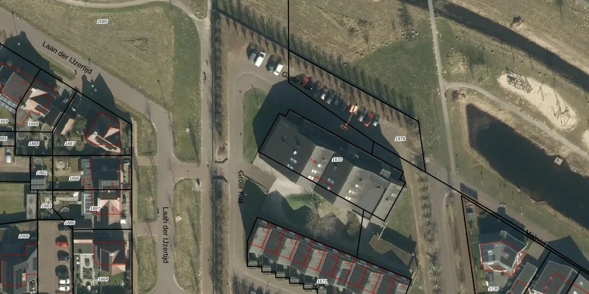 Het perceel waarop Grote Kuil 28 staat heeft een oppervlakte van 850 m². Dit is een groot perceel. De perceeloppervlakte wordt geregistreerd door het Kadaster. Gedetailleerde informatie over de maten van dit perceel kunt u vinden in het rapport Kadastrale kaart met maatvoering van Grote Kuil 28.