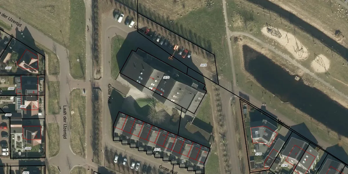 Het perceel waarop Grote Kuil 34 staat heeft een oppervlakte van 850 m². Dit is een groot perceel. De perceeloppervlakte wordt geregistreerd door het Kadaster. Gedetailleerde informatie over de maten van dit perceel kunt u vinden in het rapport Kadastrale kaart met maatvoering van Grote Kuil 34.