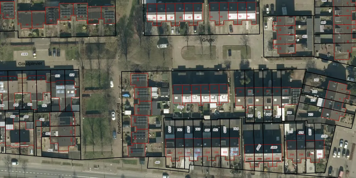 Het perceel waarop Grutto 32 staat heeft een oppervlakte van 2555 m². Dit is een zeer groot perceel. De perceeloppervlakte wordt geregistreerd door het Kadaster. Gedetailleerde informatie over de maten van dit perceel kunt u vinden in het rapport Kadastrale kaart met maatvoering van Grutto 32.