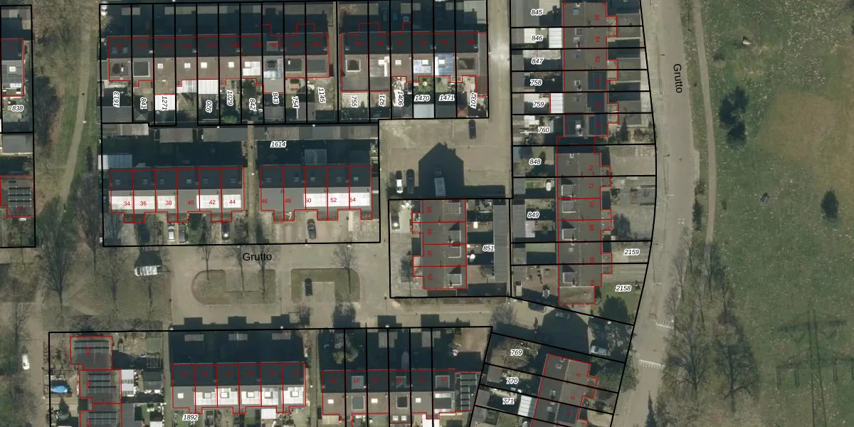 Het perceel waarop Grutto 56 staat heeft een oppervlakte van 650 m². Dit is een groot perceel. De perceeloppervlakte wordt geregistreerd door het Kadaster. Gedetailleerde informatie over de maten van dit perceel kunt u vinden in het rapport Kadastrale kaart met maatvoering van Grutto 56.