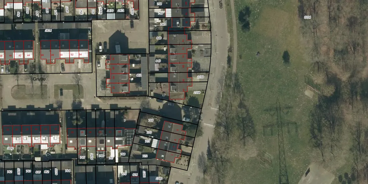 Het perceel waarop Grutto 64 staat heeft een oppervlakte van 344 m². Dit is een groot perceel. De perceeloppervlakte wordt geregistreerd door het Kadaster. Gedetailleerde informatie over de maten van dit perceel kunt u vinden in het rapport Kadastrale kaart met maatvoering van Grutto 64.