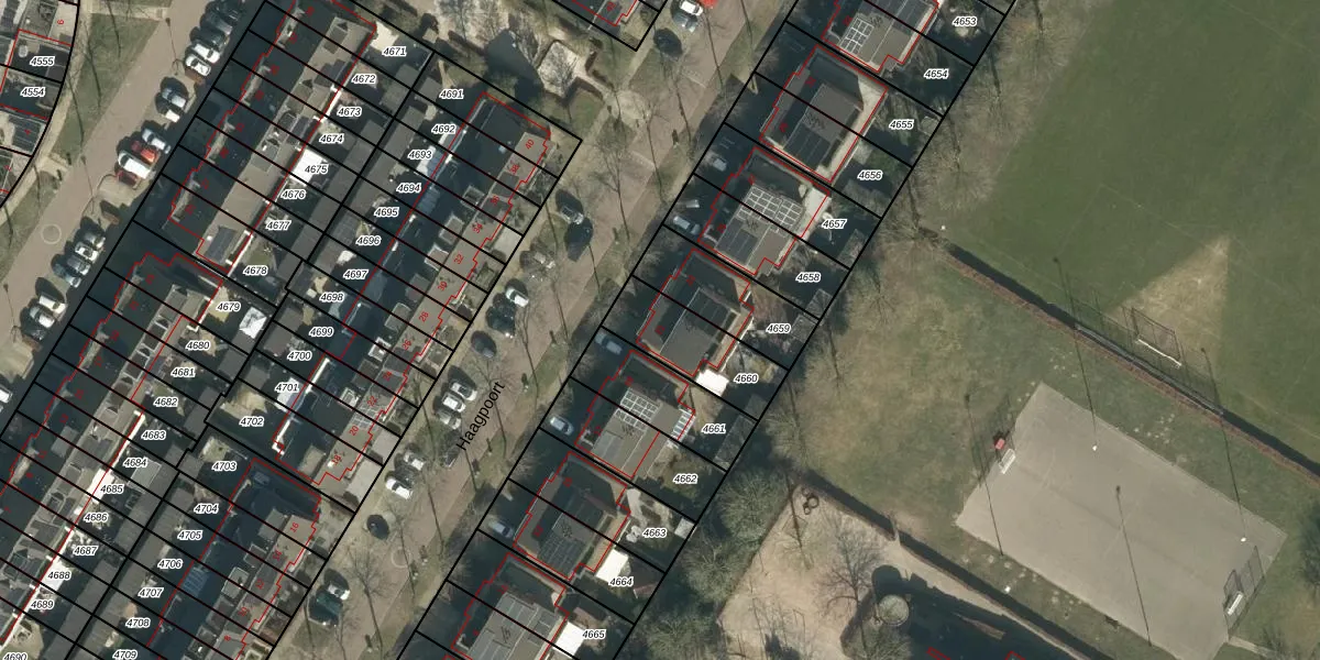 Gebruik de zoekbalk of klik op een perceel voor informatie over de adressen binnen dit perceel.