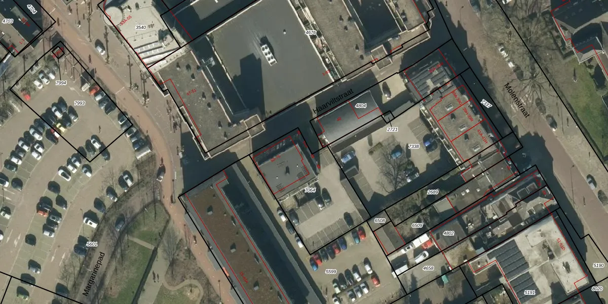 Het perceel waarop Haarviltstraat 56 staat heeft een oppervlakte van 845 m². Dit is een groot perceel. De perceeloppervlakte wordt geregistreerd door het Kadaster. Gedetailleerde informatie over de maten van dit perceel kunt u vinden in het rapport Kadastrale kaart met maatvoering van Haarviltstraat 56.