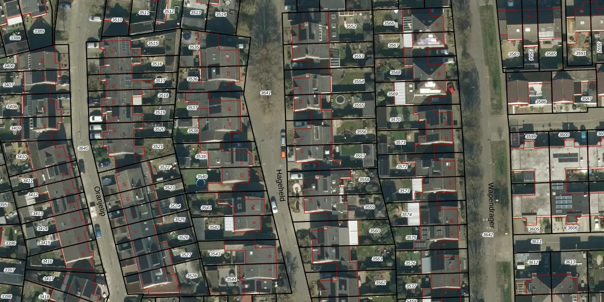 Gebruik de zoekbalk of klik op een perceel voor informatie over de adressen binnen dit perceel.