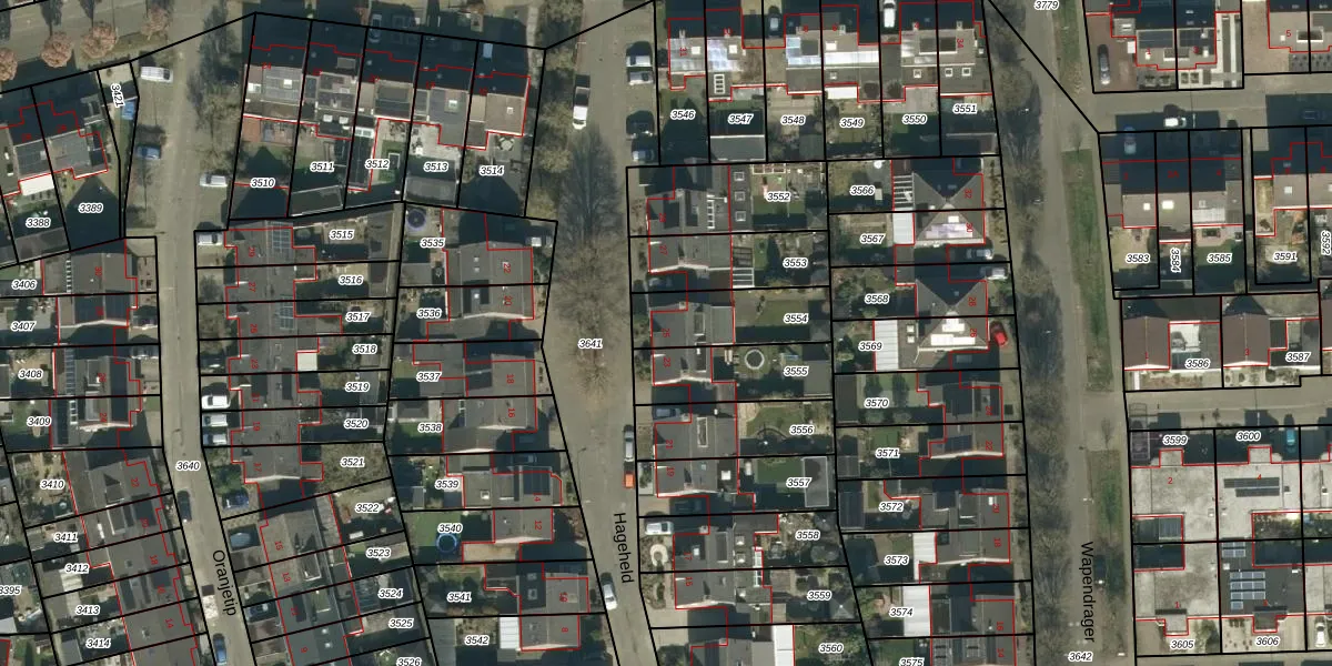 Gebruik de zoekbalk of klik op een perceel voor informatie over de adressen binnen dit perceel.