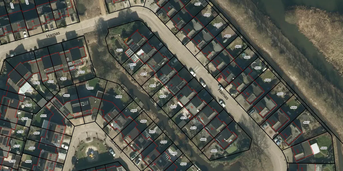 Het perceel waarop Harnas 45 staat heeft een oppervlakte van 224 m². Dit is een middelgroot perceel. De perceeloppervlakte wordt geregistreerd door het Kadaster. Gedetailleerde informatie over de maten van dit perceel kunt u vinden in het rapport Kadastrale kaart met maatvoering van Harnas 45.
