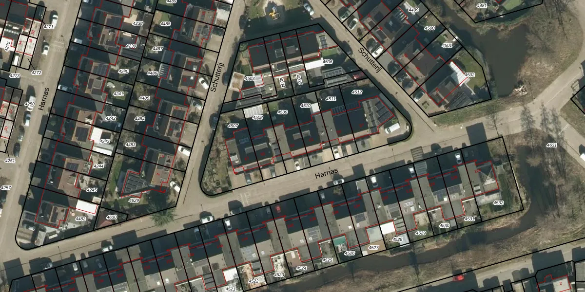 Het perceel waarop Harnas 63 staat heeft een oppervlakte van 215 m². Dit is een middelgroot perceel. De perceeloppervlakte wordt geregistreerd door het Kadaster. Gedetailleerde informatie over de maten van dit perceel kunt u vinden in het rapport Kadastrale kaart met maatvoering van Harnas 63.