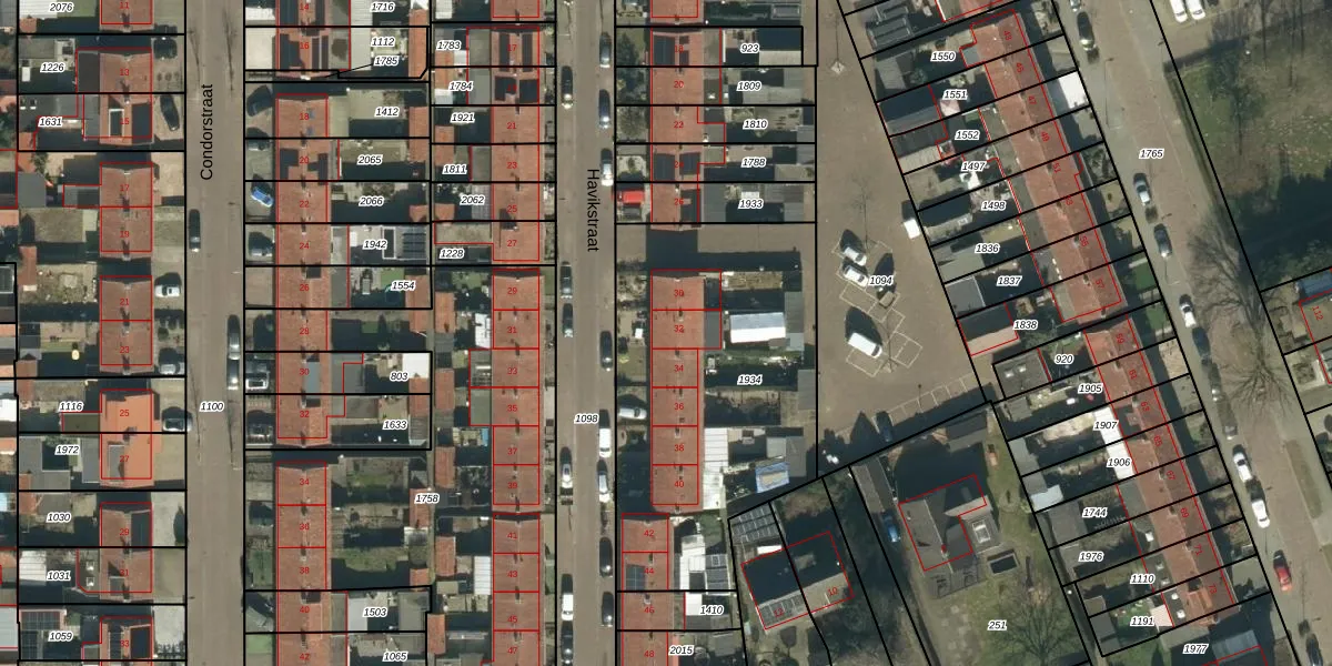 Het perceel waarop Havikstraat 32 staat heeft een oppervlakte van 1527 m². Dit is een zeer groot perceel. De perceeloppervlakte wordt geregistreerd door het Kadaster. Gedetailleerde informatie over de maten van dit perceel kunt u vinden in het rapport Kadastrale kaart met maatvoering van Havikstraat 32.