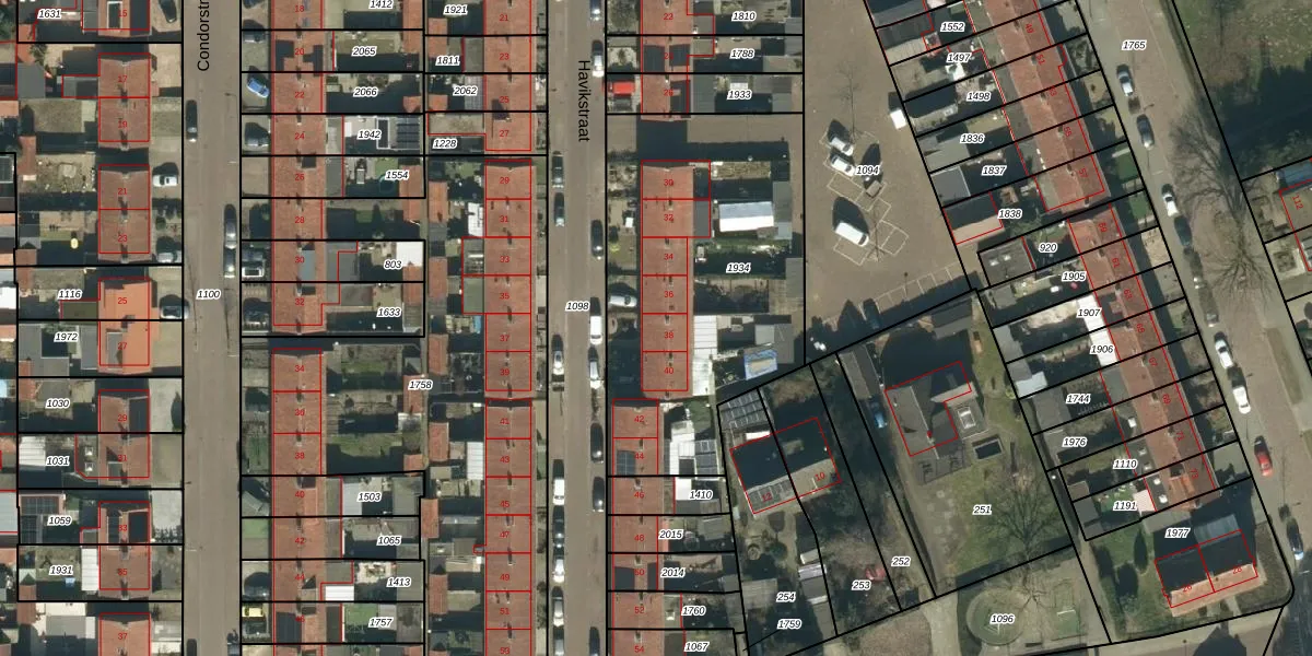 Het perceel waarop Havikstraat 38 staat heeft een oppervlakte van 1527 m². Dit is een zeer groot perceel. De perceeloppervlakte wordt geregistreerd door het Kadaster. Gedetailleerde informatie over de maten van dit perceel kunt u vinden in het rapport Kadastrale kaart met maatvoering van Havikstraat 38.