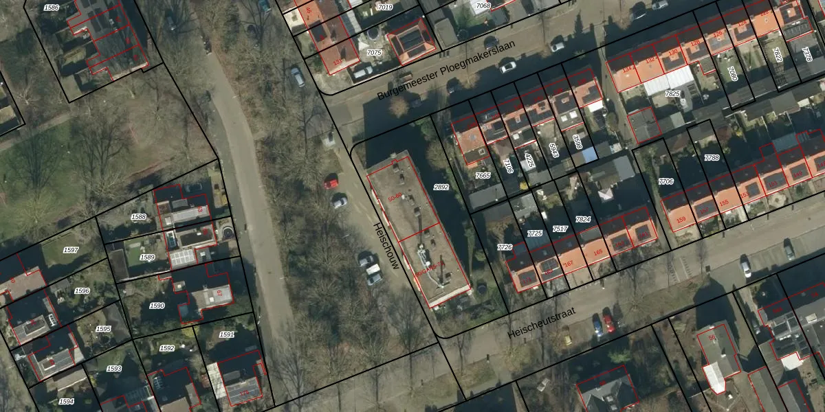 Het perceel waarop Heischouw 58 staat heeft een oppervlakte van 1060 m². Dit is een zeer groot perceel. De perceeloppervlakte wordt geregistreerd door het Kadaster. Gedetailleerde informatie over de maten van dit perceel kunt u vinden in het rapport Kadastrale kaart met maatvoering van Heischouw 58.