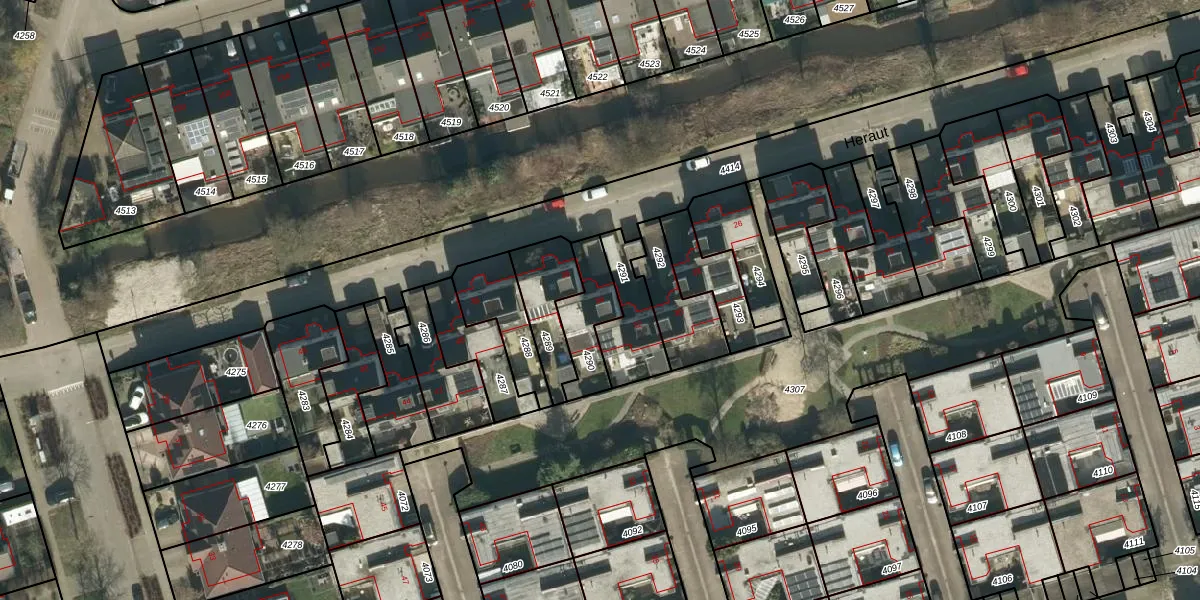 Het perceel waarop Heraut 34 staat heeft een oppervlakte van 166 m². Dit is een middelgroot perceel. De perceeloppervlakte wordt geregistreerd door het Kadaster. Gedetailleerde informatie over de maten van dit perceel kunt u vinden in het rapport Kadastrale kaart met maatvoering van Heraut 34.