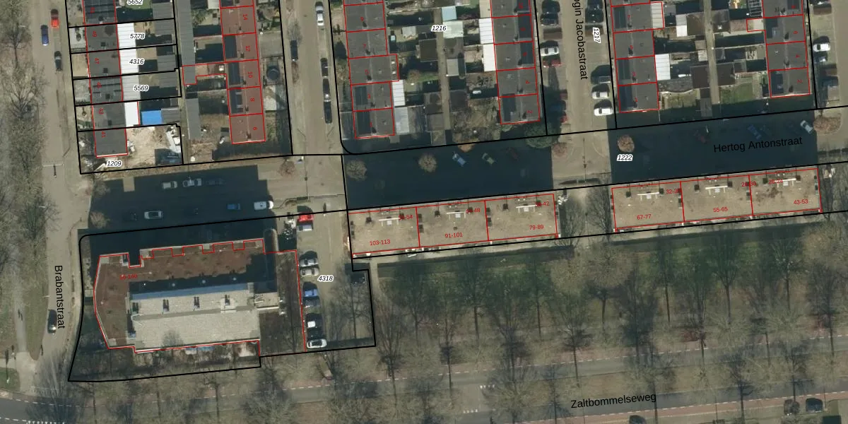 Het perceel waarop Hertog Antonstraat 48 staat heeft een oppervlakte van 2011 m². Dit is een zeer groot perceel. De perceeloppervlakte wordt geregistreerd door het Kadaster. Gedetailleerde informatie over de maten van dit perceel kunt u vinden in het rapport Kadastrale kaart met maatvoering van Hertog Antonstraat 48.