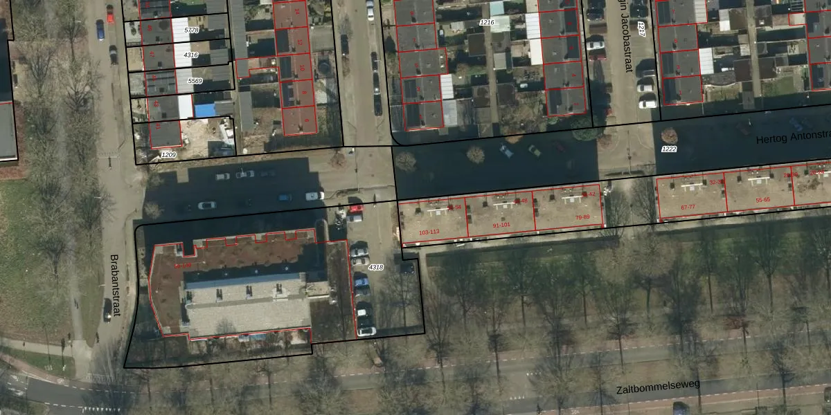 Het perceel waarop Hertog Antonstraat 52 staat heeft een oppervlakte van 2011 m². Dit is een zeer groot perceel. De perceeloppervlakte wordt geregistreerd door het Kadaster. Gedetailleerde informatie over de maten van dit perceel kunt u vinden in het rapport Kadastrale kaart met maatvoering van Hertog Antonstraat 52.