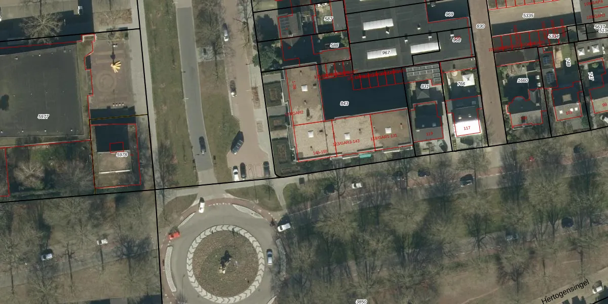 Hertogensingel 151 is gelegen op kadastraal perceel OSS00K843. Deze kadastrale aanduiding is uniek en wordt gebruikt door het Kadaster om eigendomsrechten en andere zakelijke rechten vast te leggen. Het perceel maakt onderdeel uit van de kadastrale gemeente Oss.