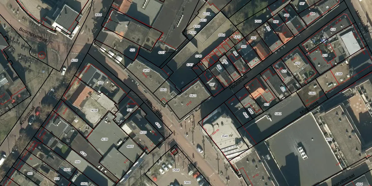 Het perceel waarop het adres ligt is OSS00-E-5422. De afkorting 'OSS00' staat voor kadastrale gemeente Oss. Het perceel is kleiner dan gemiddeld in Oss. Het perceel is 265 m² groot, terwijl het gemiddelde ligt op 2394,22 m². Het kleinste perceel in de kadastrale gemeente is 0 m² groot. De grootste perceeloppervlakte is 36,1 ha. Er zijn 10 adressen aanwezig op het perceel. De laatste wijziging in het de Basisregistratie Kadaster (BRK) was op 20-01-2012.