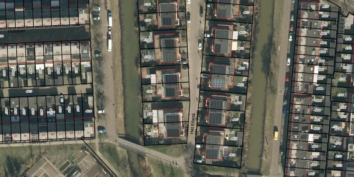 Het Eiland 10 is gelegen op kadastraal perceel OSS00D4797. Deze kadastrale aanduiding is uniek en wordt gebruikt door het Kadaster om eigendomsrechten en andere zakelijke rechten vast te leggen. Het perceel maakt onderdeel uit van de kadastrale gemeente Oss.
