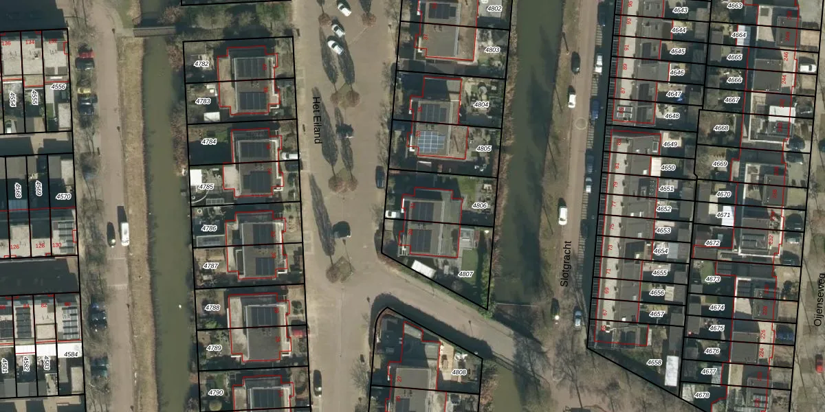 Gebruik de zoekbalk of klik op een perceel voor informatie over de adressen binnen dit perceel.
