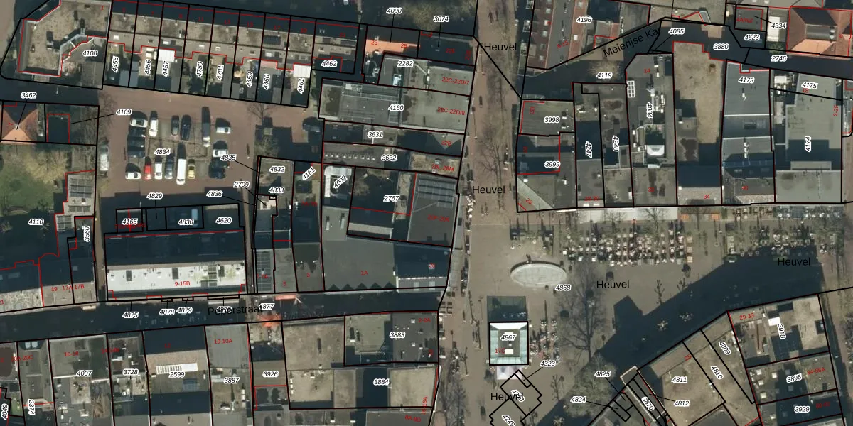 Het perceel waarop Heuvel 20-G staat heeft een oppervlakte van 410 m². Dit is een groot perceel. De perceeloppervlakte wordt geregistreerd door het Kadaster. Gedetailleerde informatie over de maten van dit perceel kunt u vinden in het rapport Kadastrale kaart met maatvoering van Heuvel 20-G.